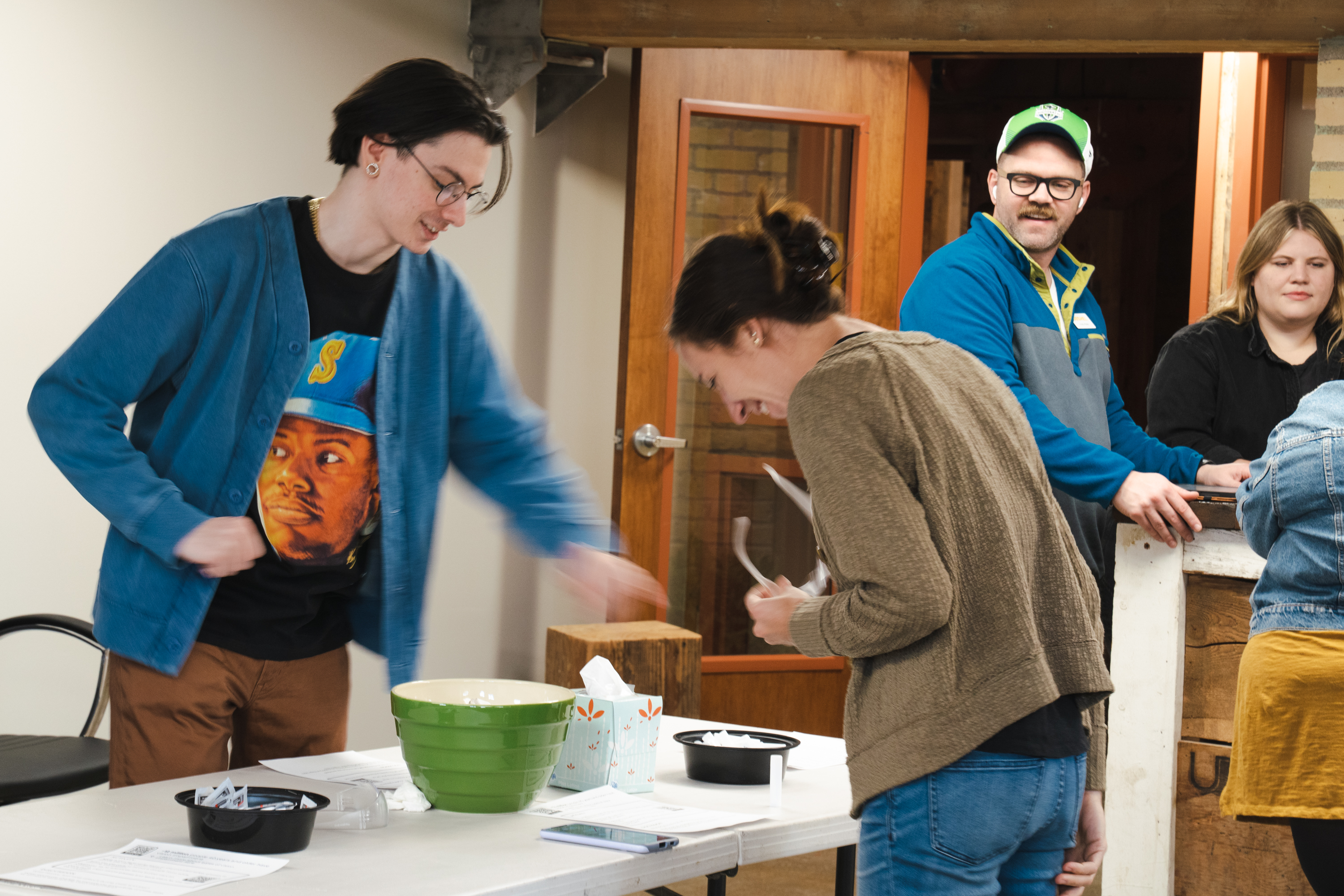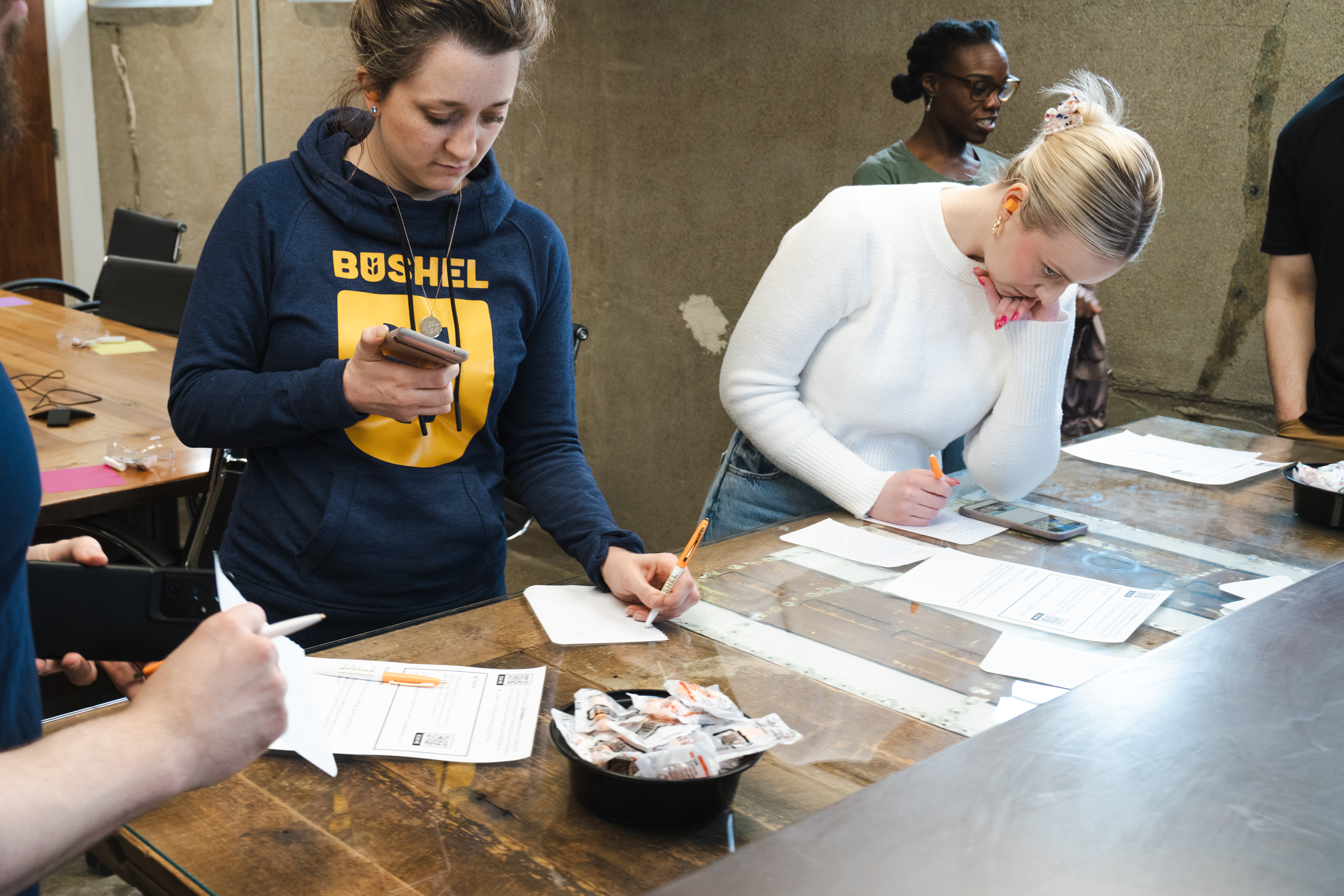 Each table had a facilitator from the design team to guide participants through the activities, scanning QR codes with their phones to activate the assigned task.